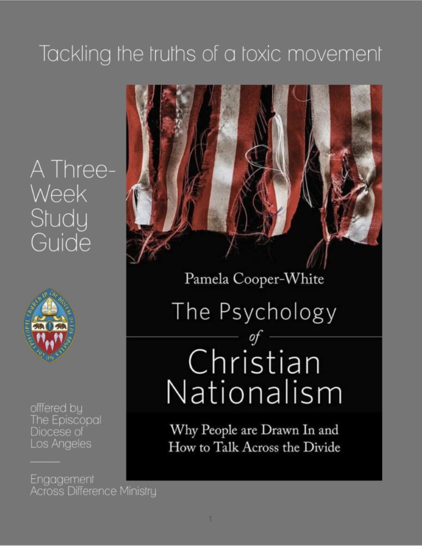 A multi-media study guide is now available for a three-session opportunity to explore the what, why and how of Christian Nationalism using Pamela Cooper-White’s brilliant book “The Psychology of Christian Nationalism: Why People Are Drawn In and How to Talk Across the Divide.”